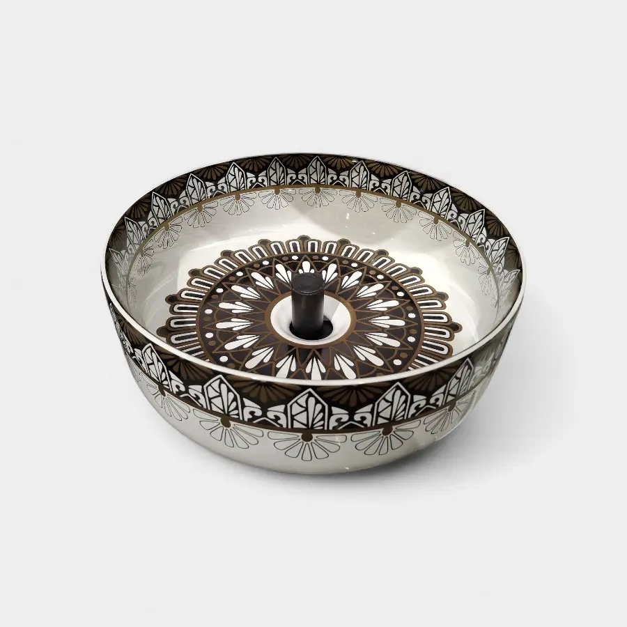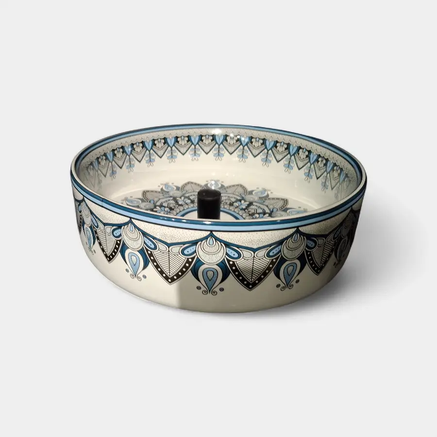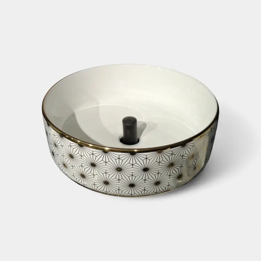 Transforma tu baño en un espacio de lujo con nuestro lavamanos de sobreponer tipo Vessel en cerámica blanca con delicados detalles y formato estandar . Su acabado brillante y la combinación de colores lo convierten en una pieza protagonista que eleva la estética del lugar.