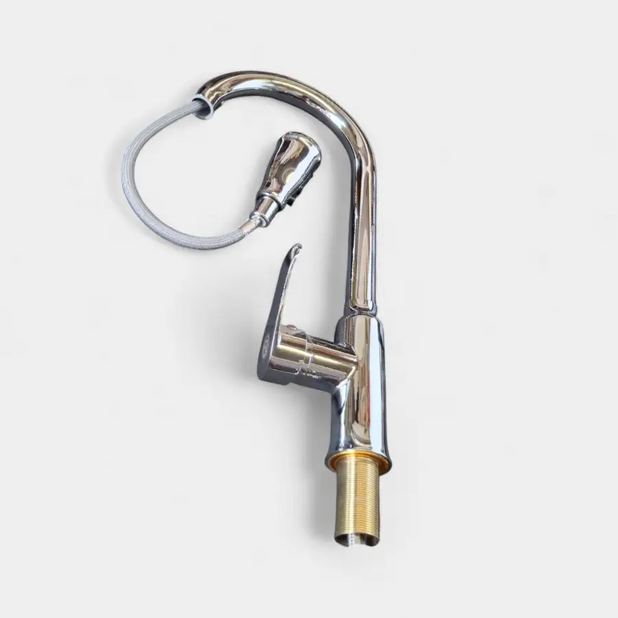 Innovación y comodidad en tu cocina. Grifería de acero con pico extraíble que permite mayor alcance y movilidad, perfecta para lavar frutas, verduras y utensilios grandes. Disponible en acabados cromado, negro, dorado o brillante.