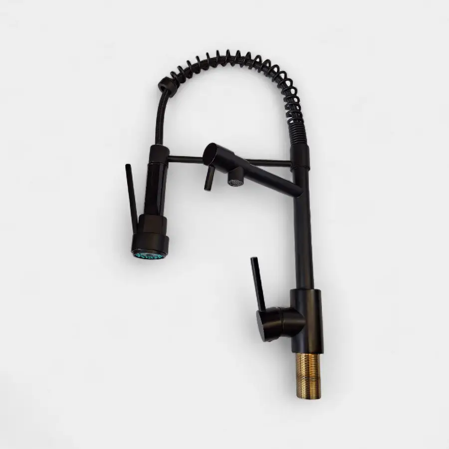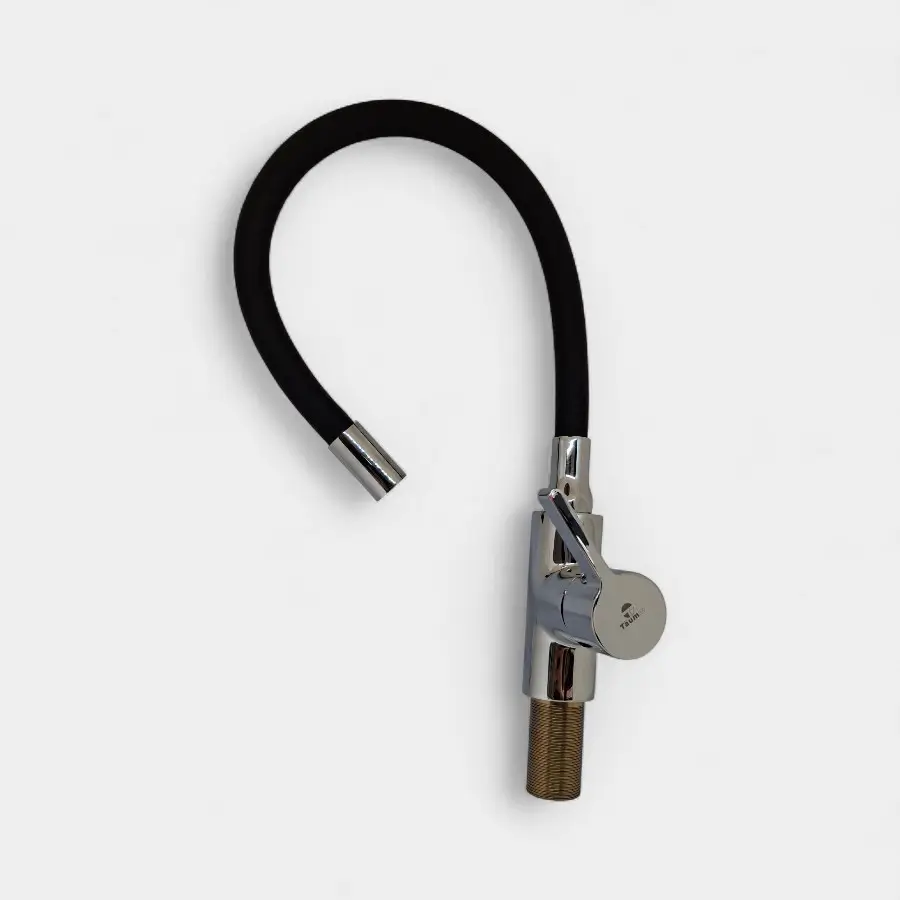Grifería monocontrol con soporte fijo, que combina un diseño moderno con funcionalidad práctica, ideal para cocinas de estilo contemporáneo. Su acabado brillante o semimate aporta elegancia y resistencia, adaptándose a distintos ambientes. Disponible con manguera enchaquetada de gran resistencia y durabilidad.