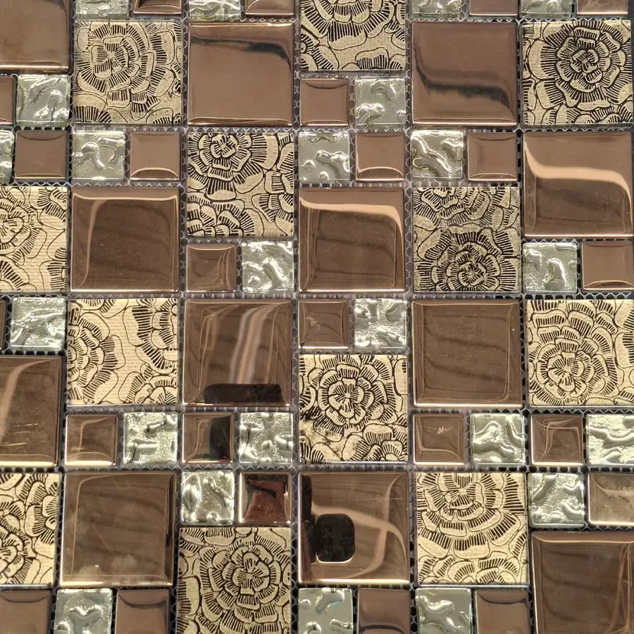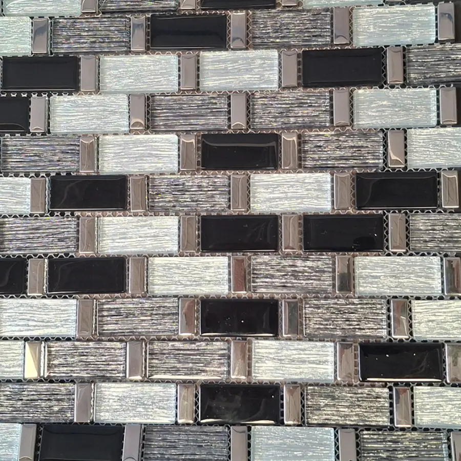 Piezas decorativas fabricadas en cerámica y vidrio de alta calidad, resistentes a la humedad y fáciles de limpiar. Su combinación de materiales crea un efecto visual único, con acabados brillantes, mate o traslúcidos. Vienen montados en mallas para facilitar su instalación.