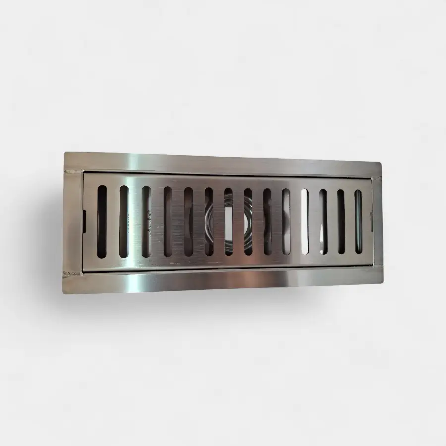 La rejilla con sifón antiolor de 10 × 30 cm está diseñada para cubrir áreas de mayor desagüe con un estilo moderno y funcional. Su estructura alargada proporciona un drenaje eficiente mientras mantiene los espacios libres de malos olores. Ideal para baños, duchas tipo walk-in, cocinas y zonas húmedas de alto tráfico.